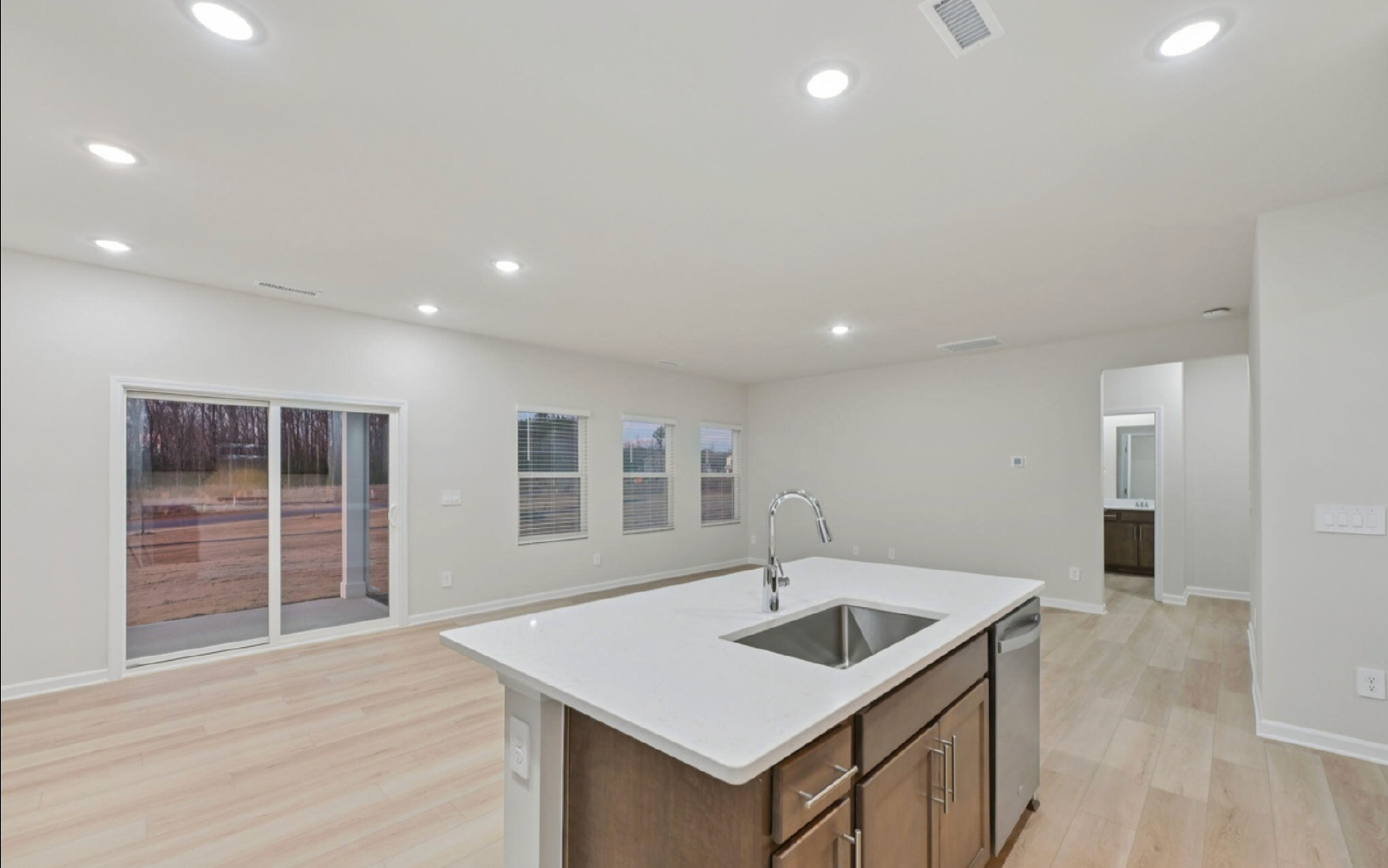 The main level showcases a bright open-concept living area that seamlessly connects the living room, dining space, and kitchen, creating an inviting setting for everyday living and entertaining. The well-appointed kitchen features a large center island, modern finishes, ample cabinetry, and excellent sightlines into the living area. Upstairs, the spacious primary suite provides a relaxing retreat with a walk-in closet and en-suite bath, while additional bedrooms offer flexibility for family or guests. A large second-floor bonus room adds valuable extra space—ideal for a media room, playroom, or additional lounge area.