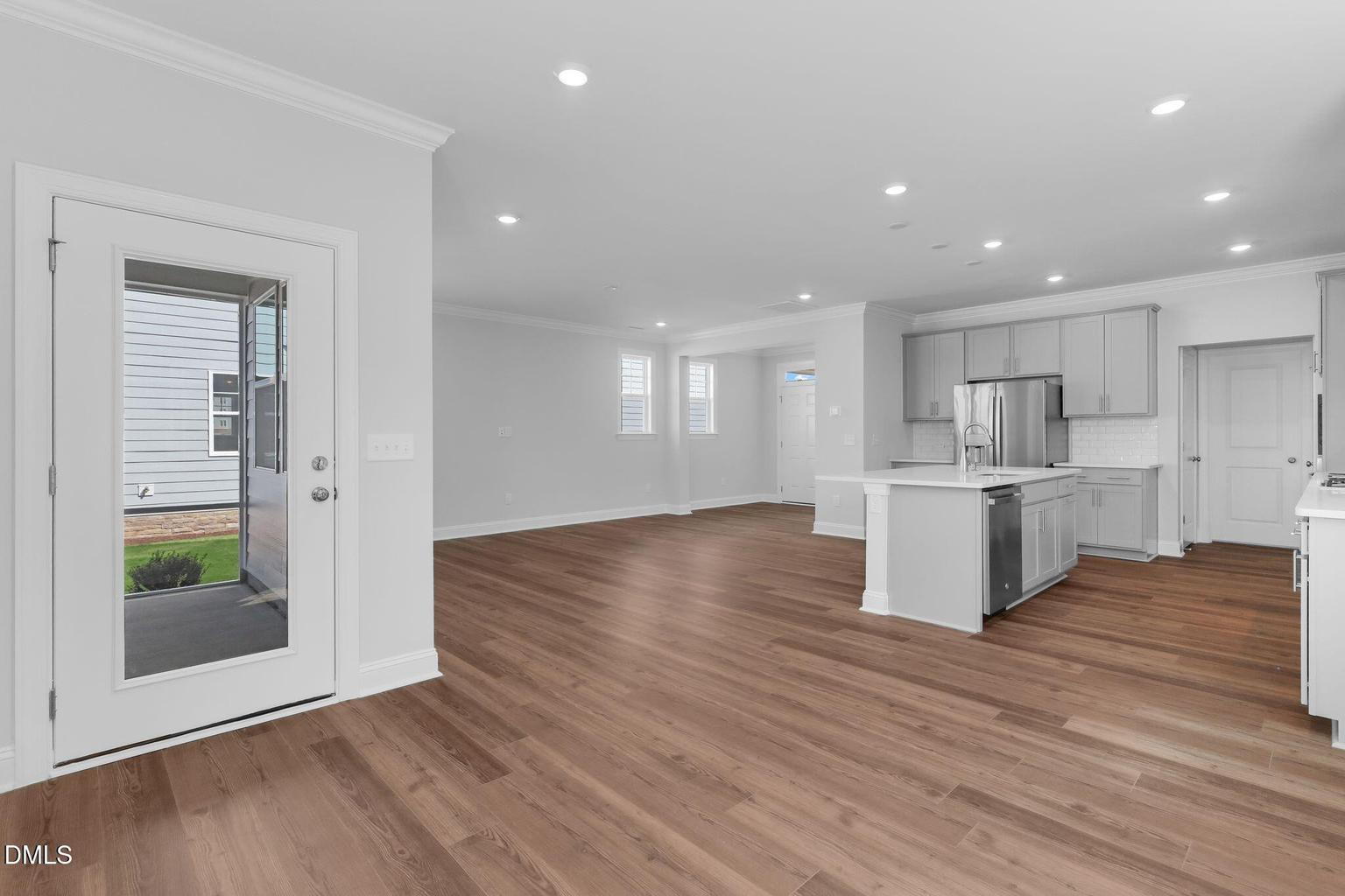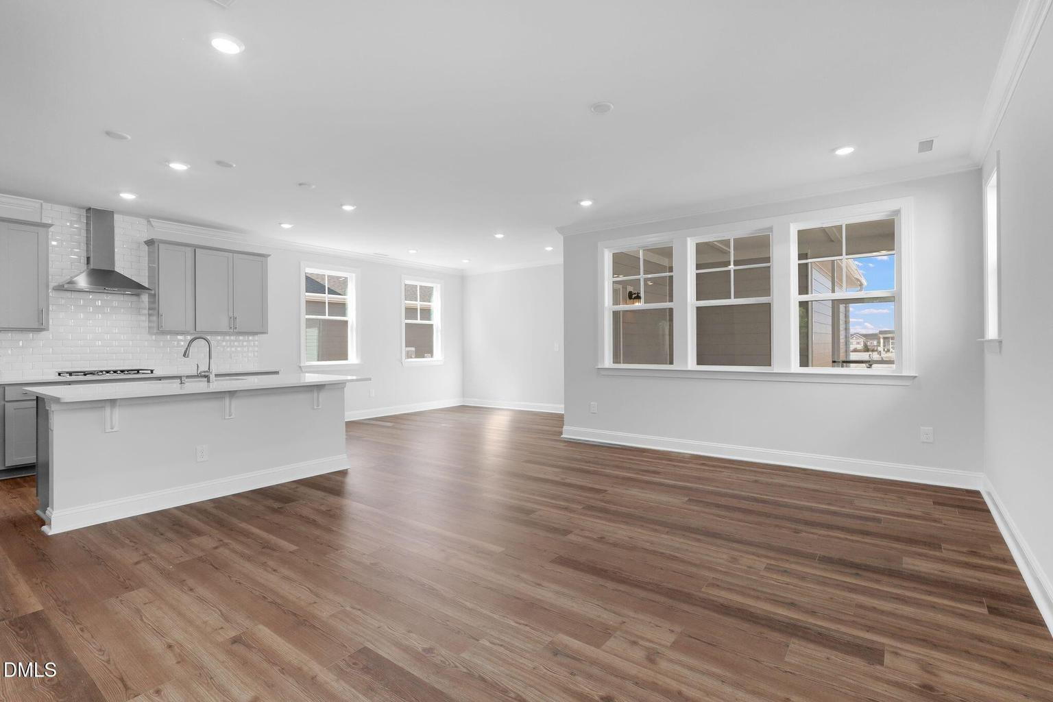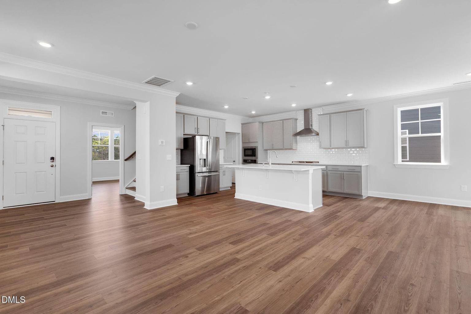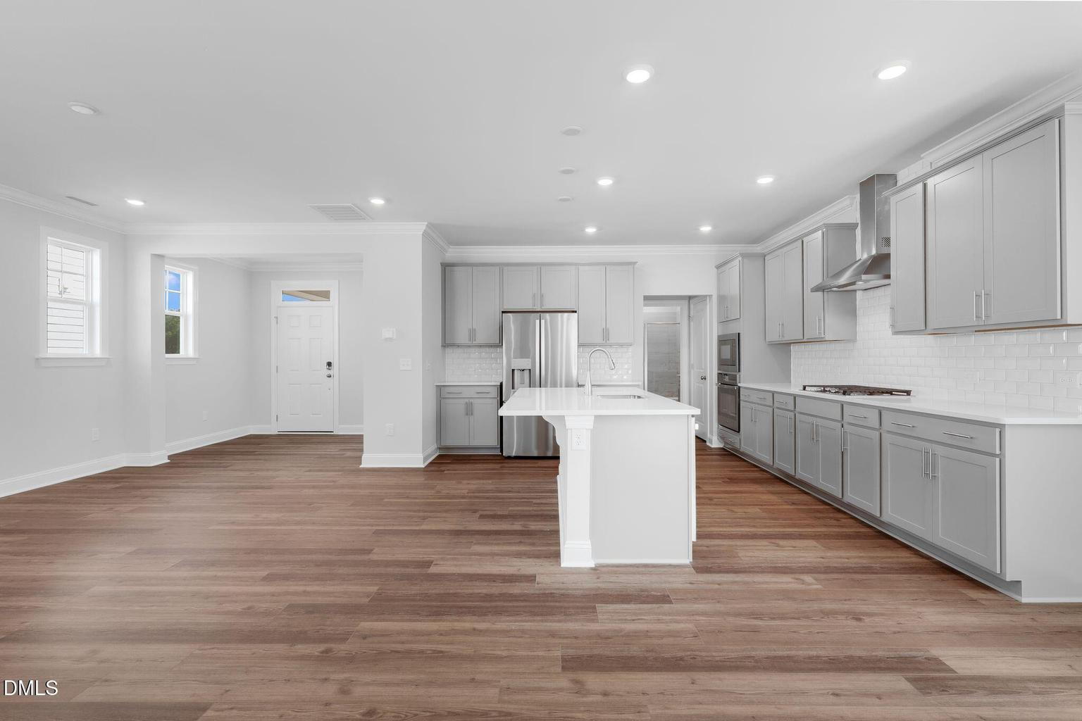 A standout feature is the first-floor guest suite with a full bathroom, perfect for guests, extended family, or a private home office. The main living area flows into a modern kitchen with a large island, gas cooktop, stainless steel appliances, and walk-in pantry, offering both style and functionality.